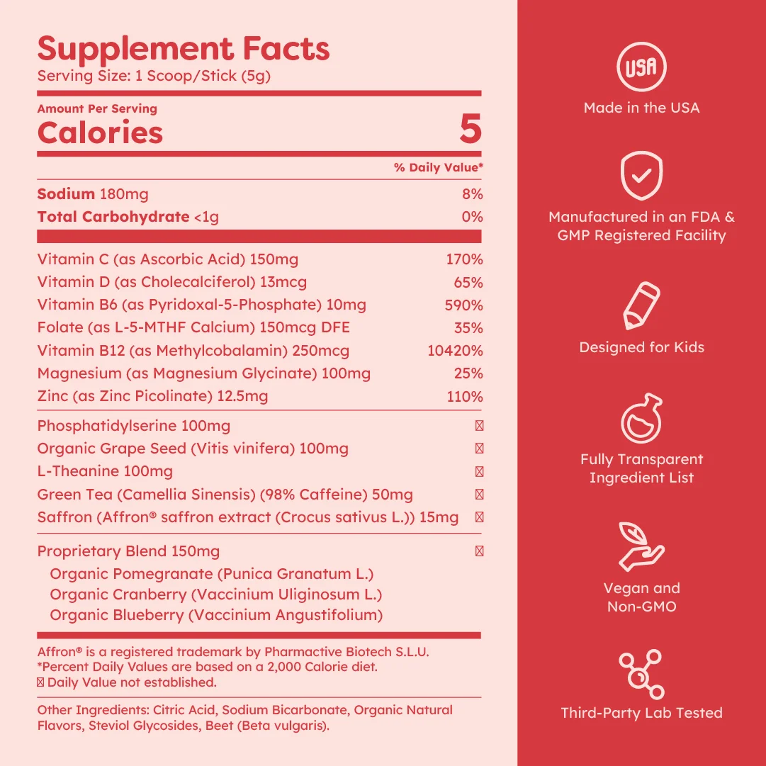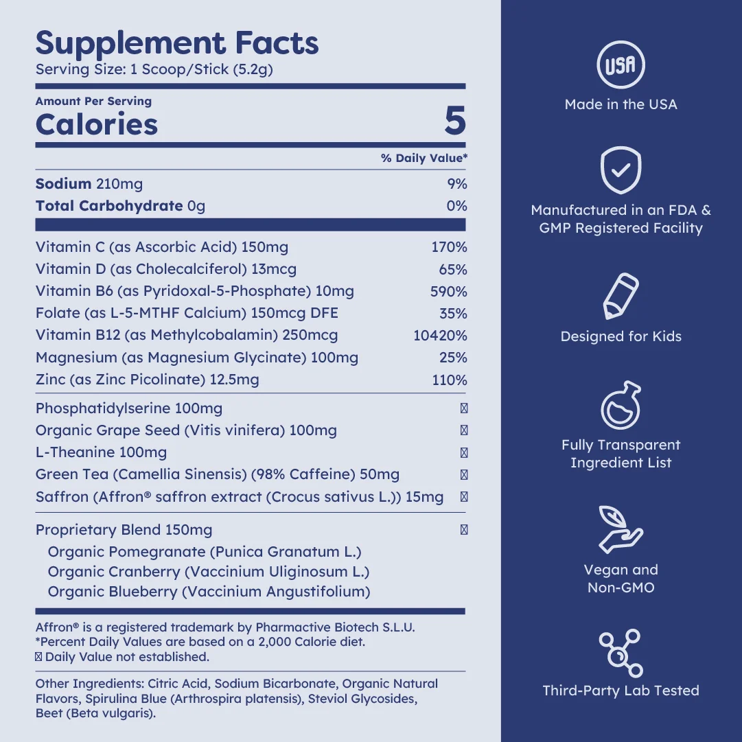 FizzyIQ is made in the USA in an FDA-registered, NSF-certified, and GMP-compliant facility — meeting the highest standards in the industry. Every batch is third-party tested for heavy metals, impurities, and label accuracy, so what’s on the label is exactly what’s in the powder. No shortcuts. No guesswork. Just pure, tested nutrition your child deserves. COAs available upon request.